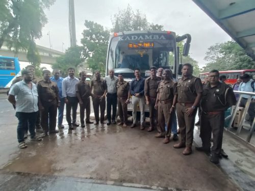 Inauguration of new bus service on route Panaji to Aadmapur Kolhapur via Porvorim – Mapusa – Colvale – Dhargal – Pernem – Ugvem – Patradevi – Banda – Insuli – Sawantwadi – Amboli – Ajara – Uttur – Gargoti – Balumama Temple Admapur and vice versa at 15.00 hrs from Panaji and 05.15 hrs from Kolhapur, 06.30 hrs from Admapur at the hands of Shri Rajpal Shirodkar Traffic Controller, (on his day of Retirement) in presence of Shri Andrew Pereira DTO, and Shri Girish Gaude DM Panaji Depot in presence of Shri, Rishubh Parsekar ATI, TC, staff, commuters and others at Panaji Kadamba Bus Terminus